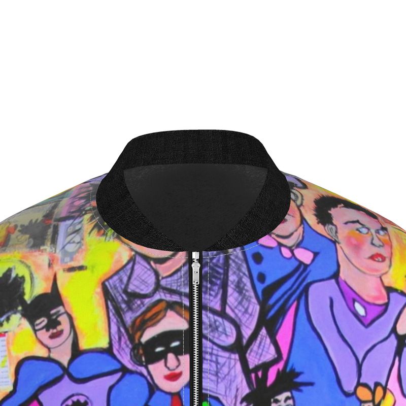 Heros and Villians bomber jacket from an original painting by lesley blackburn