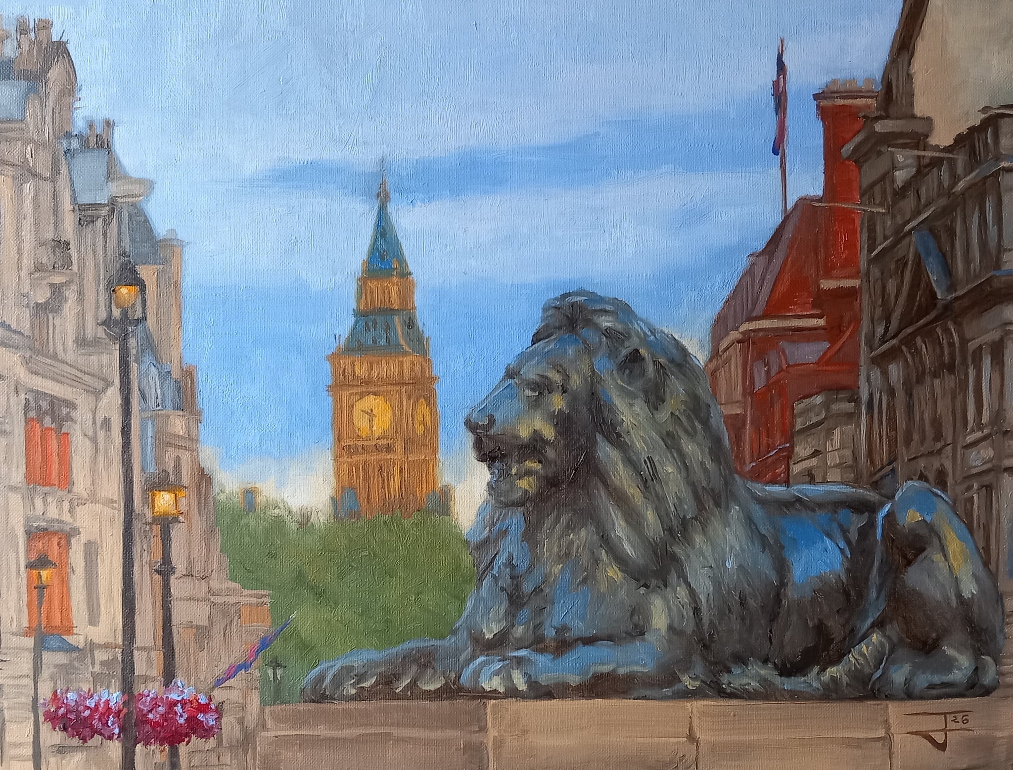 This Trafalgar Square looking towards Big Ben original oil painting is ideal for collectors of British cityscapes, London landmark art, and traditional representational painting. Whether displayed in a home, office, or gallery setting, it offers a timeless tribute to London’s cultural heritage.