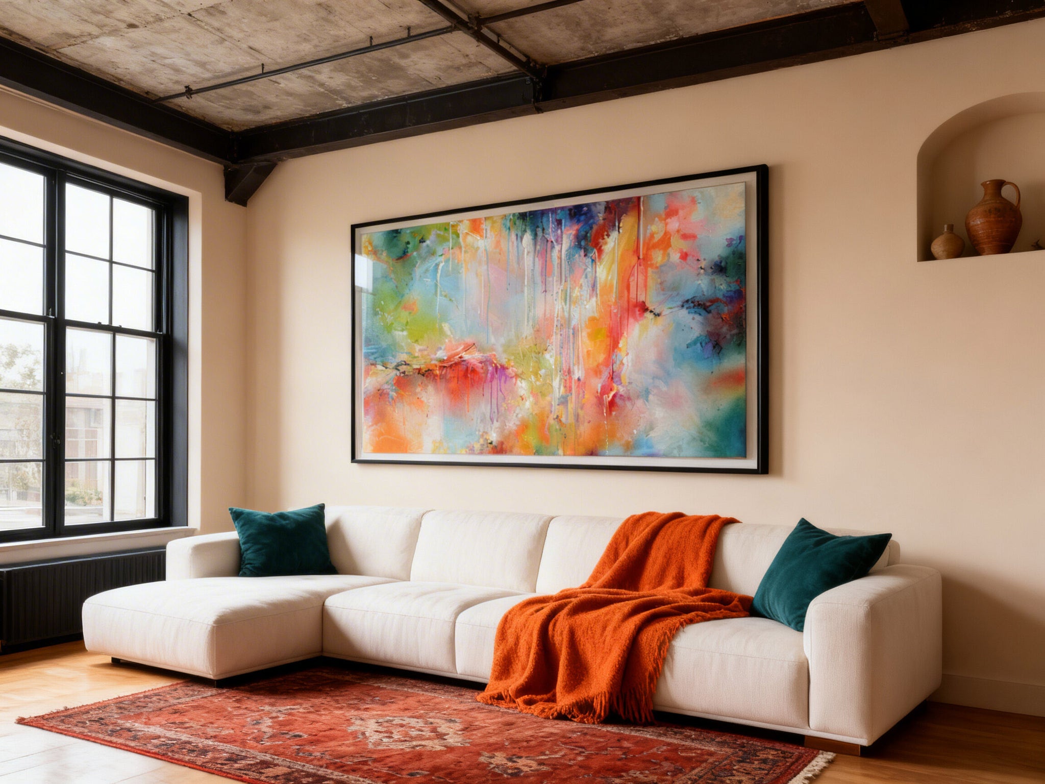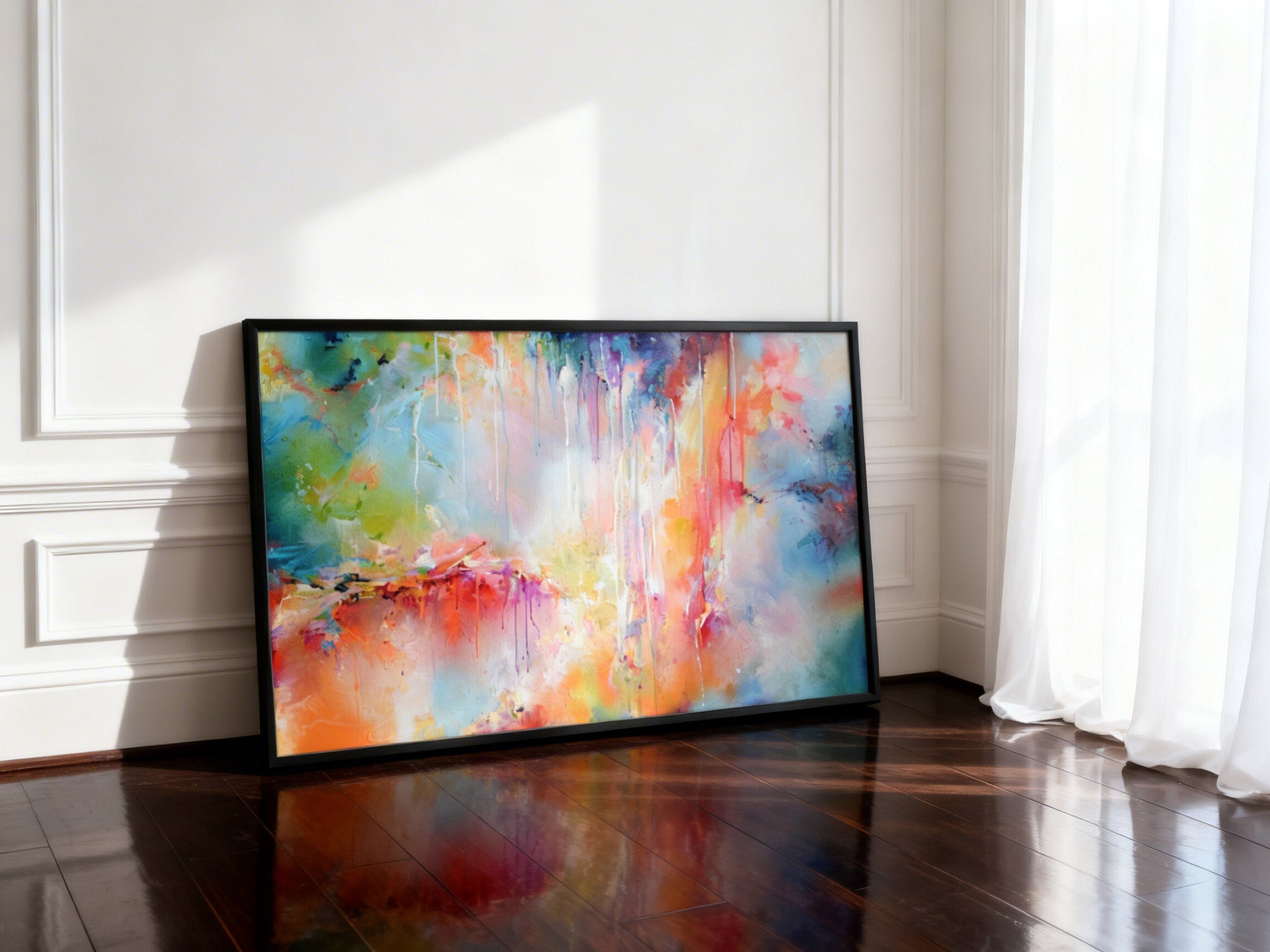 Its vibrant palette enhances interiors by adding energy without overwhelming the space, making it an ideal focal point for modern homes or creative environments. Whether displayed in a living room, bedroom, or office, the piece invites contemplation while maintaining a lively presence.