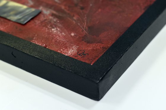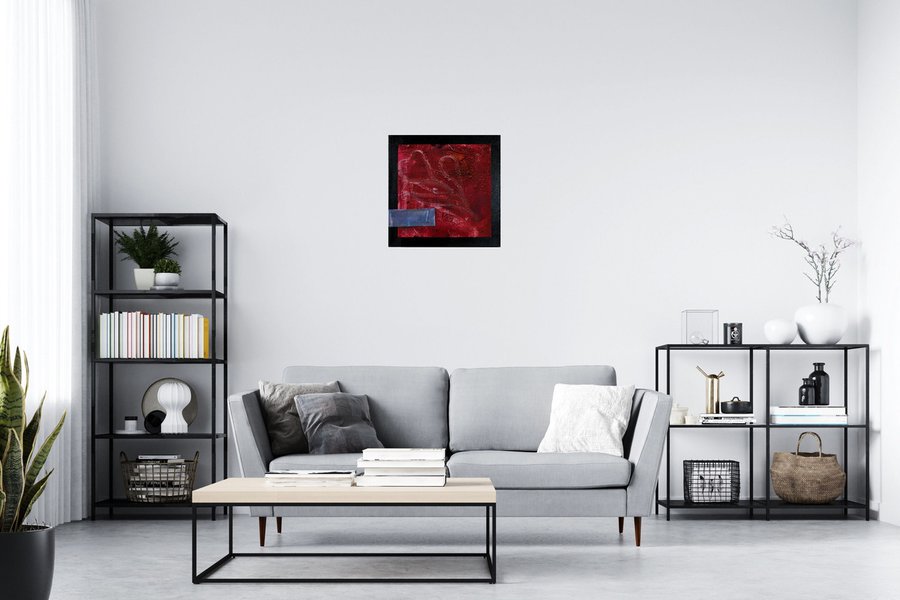 #contemporary#abstract art#red painting#original painting#industrial art#square format#deep red#textured canvas#emotional art#bold artwork#heart motif#metal detail#sculptural texture#modern wallart#valentine vibes
